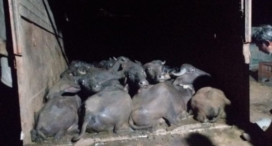 અમીરગઢના જેથી પાસેથી કતલખાને જતી 15 ભેંસો ભરેલી ટ્રક ઝડપાઇ:તમામ જીવોને ડીસા લવાયા